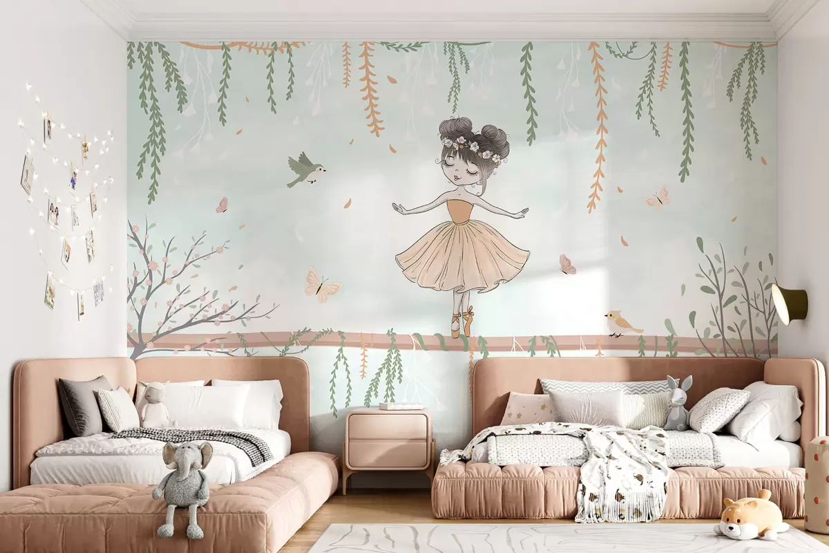 Murais de parede Uma paisagem com princesa com pássaros e borboletas Nr. w03003v1
