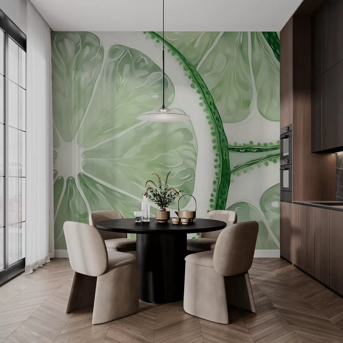 Murais de parede Círculos cítricos imitando sombra verde aquarela Nr. w03026