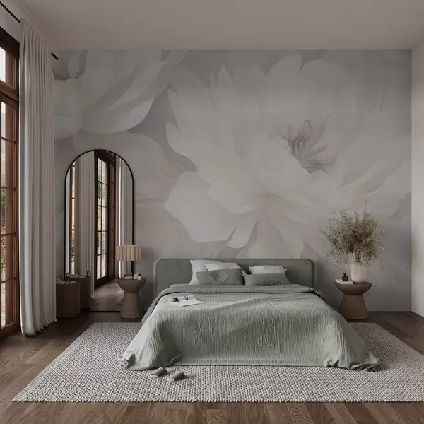 Murais de parede Flores delicadas e volumosas em tons suaves de branco-creme em um fundo suave Nr. w03045