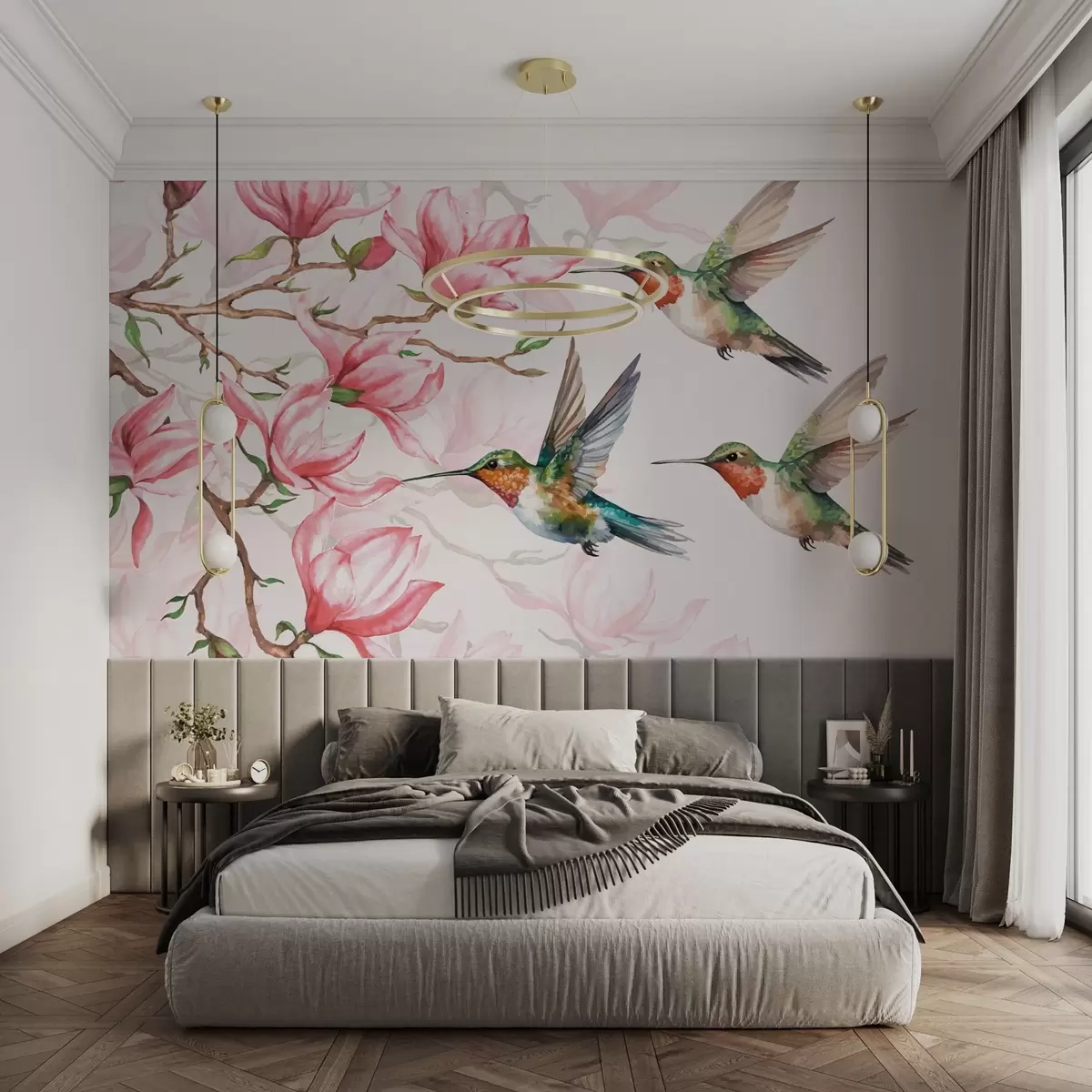 Murais de parede Magnólias em flor e beija-flores Nr. w03104
