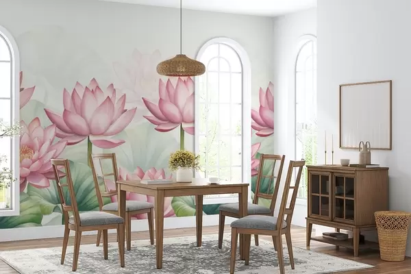 Murais de parede Grandes lótus e folhas cor-de-rosa Nr. w03107v1