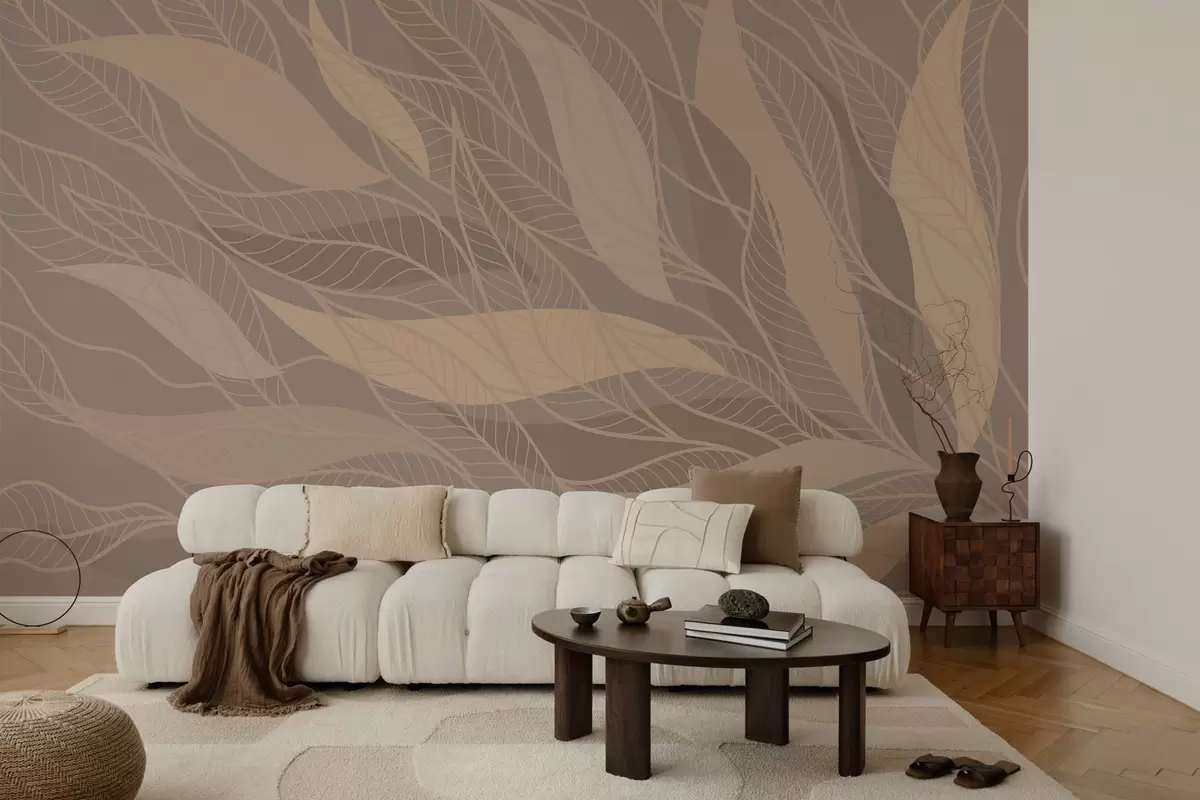 Murais de parede folhas abstratas em bege e cores quentes Nr. w03117