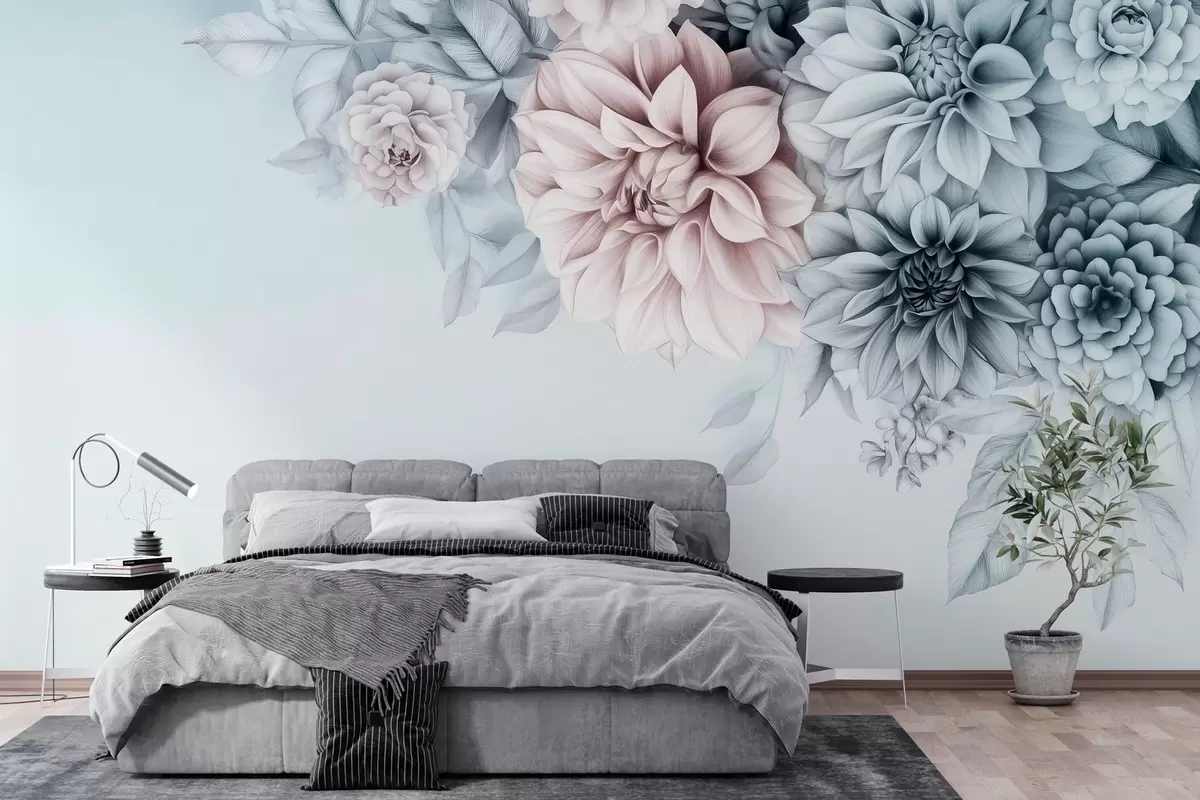 Murais de parede um buquê de crisântemos em um fundo cinza-azulado Nr. w03118