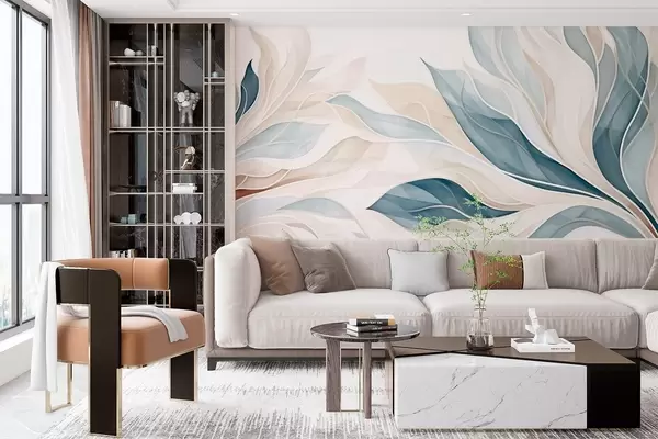 Murais de parede Ilustração digital abstrata de folhas Nr. w03140