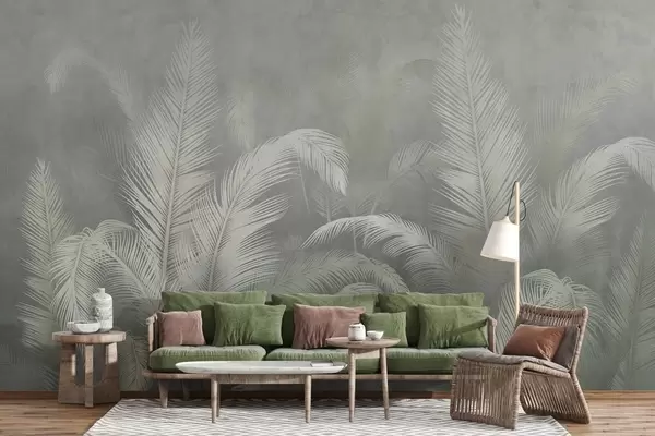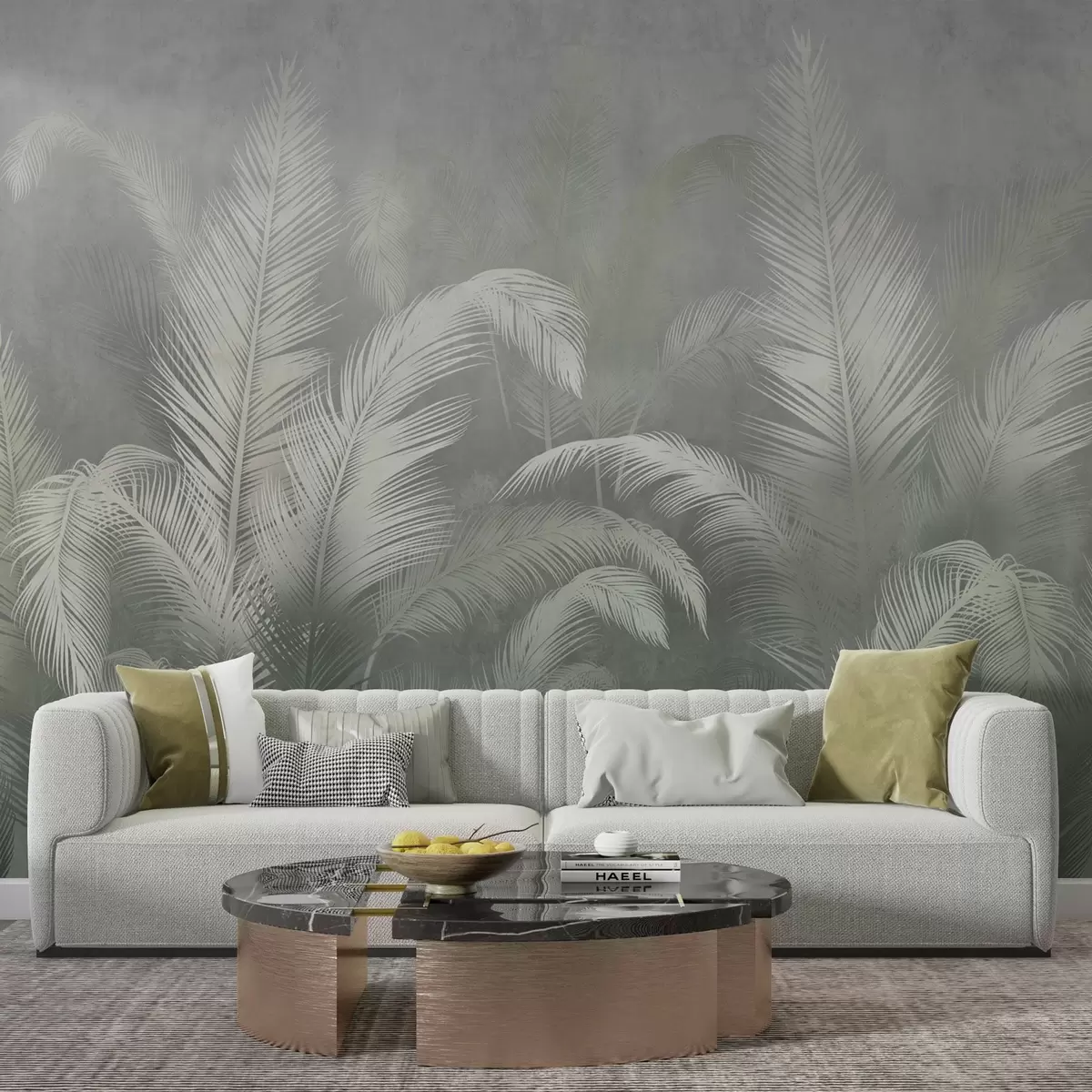 Murais de parede Folhas de palmeira tropical em estilo grunge na cor verde Nr. w03250v2