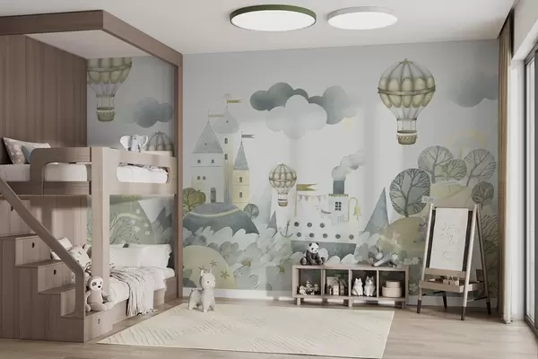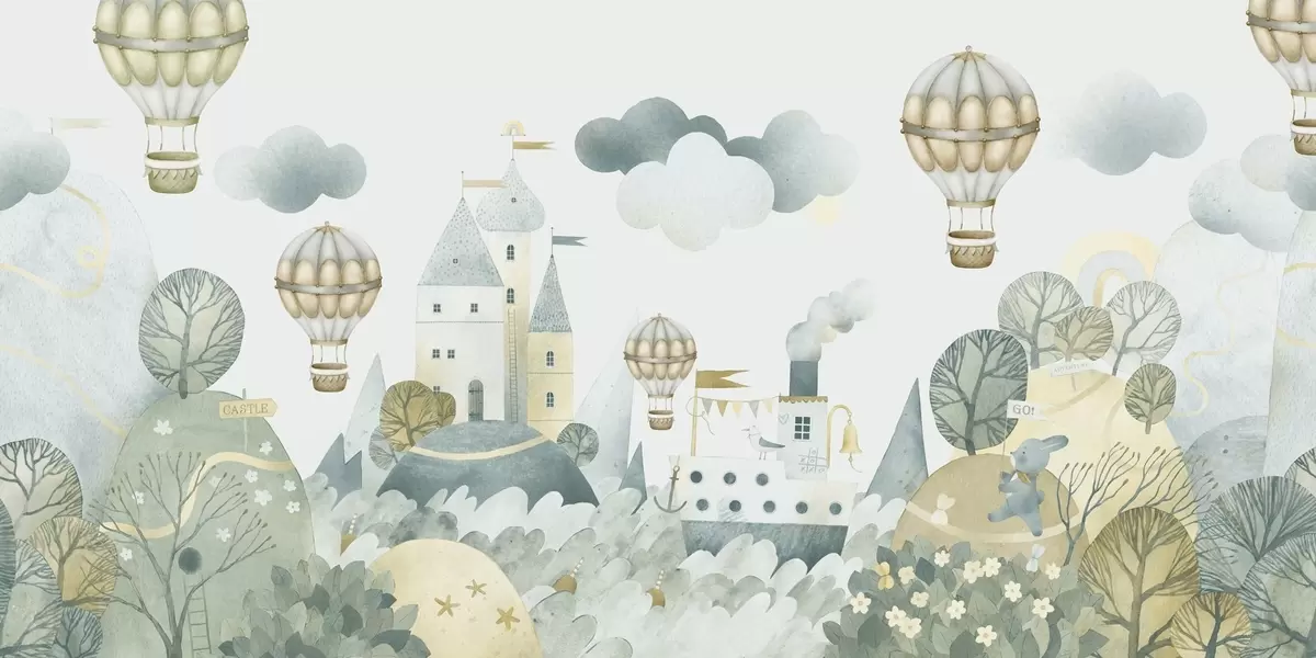 Murais de parede Balões de ar quente sobre uma cidade de contos de fadas Nr. w03258v1