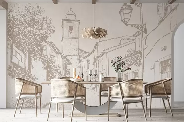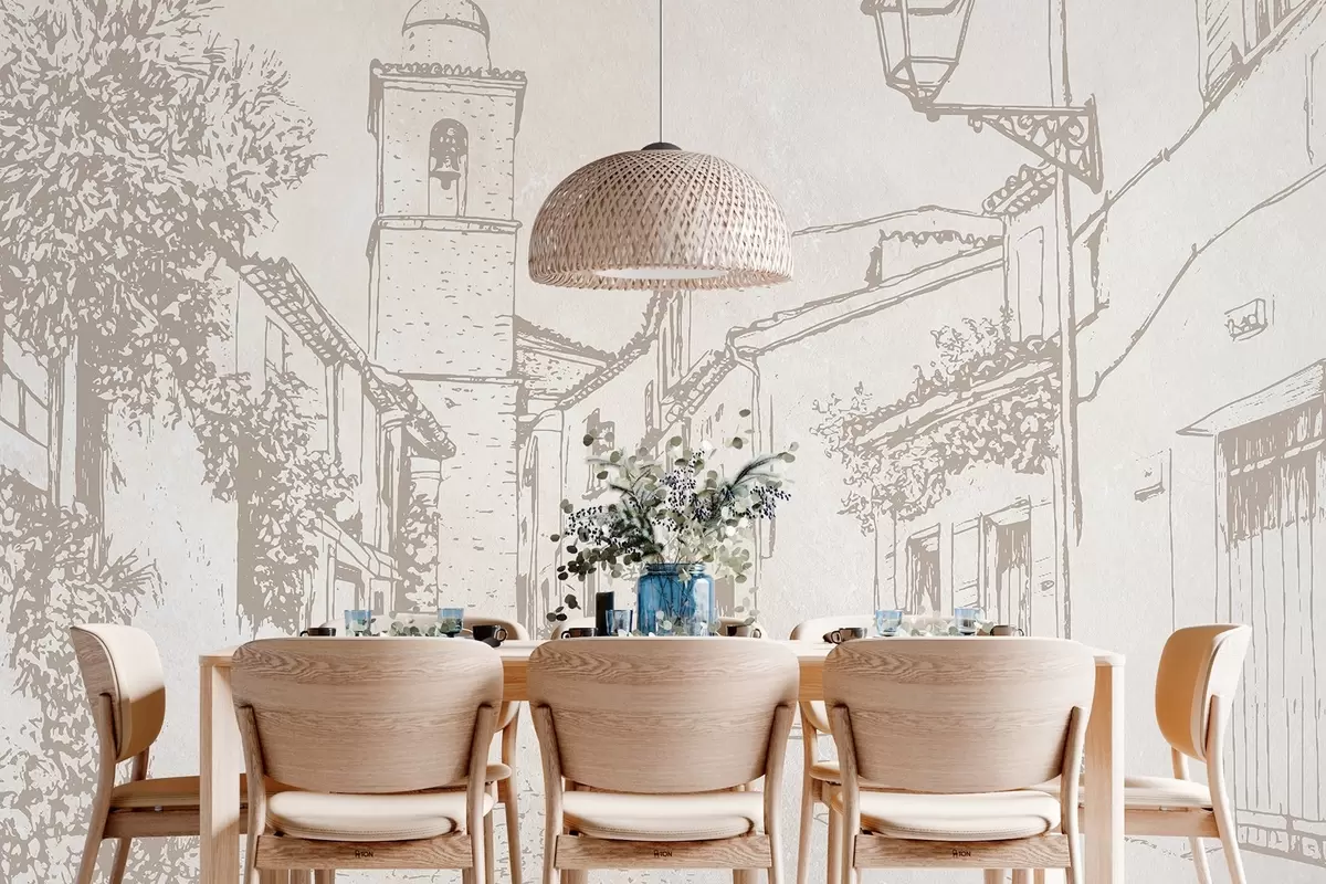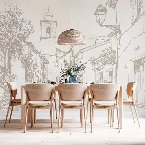 Murais de parede Rua da cidade, bela arquitetura, edifícios, Mediterrâneo, cores bege Nr. w03346