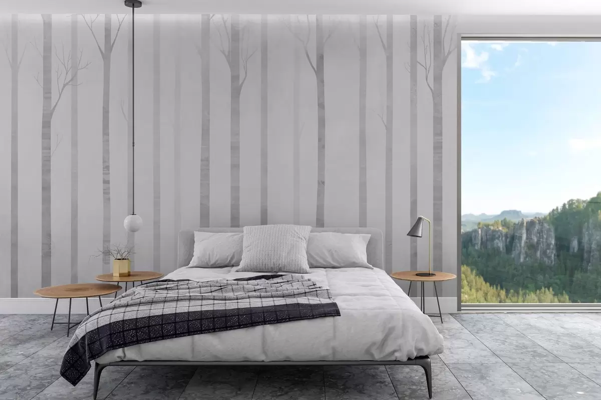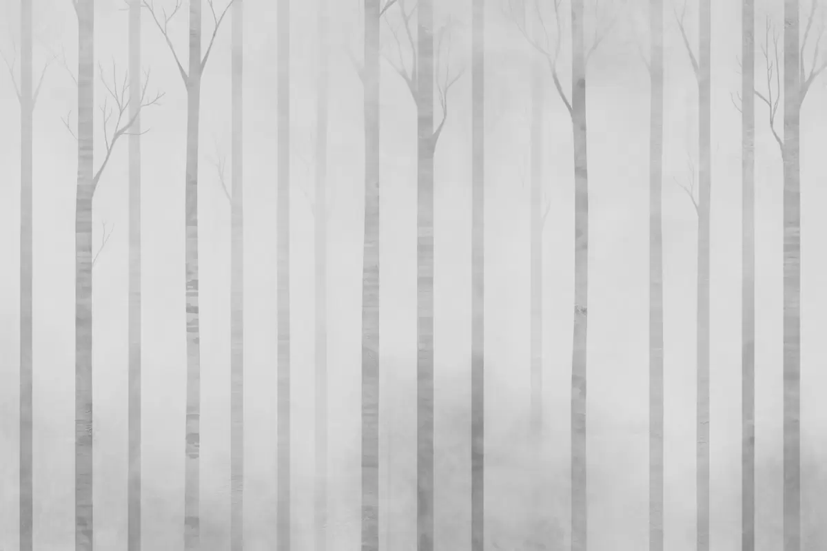 Murais de parede Troncos de árvores na neblina em escala de cinza Nr. w03386