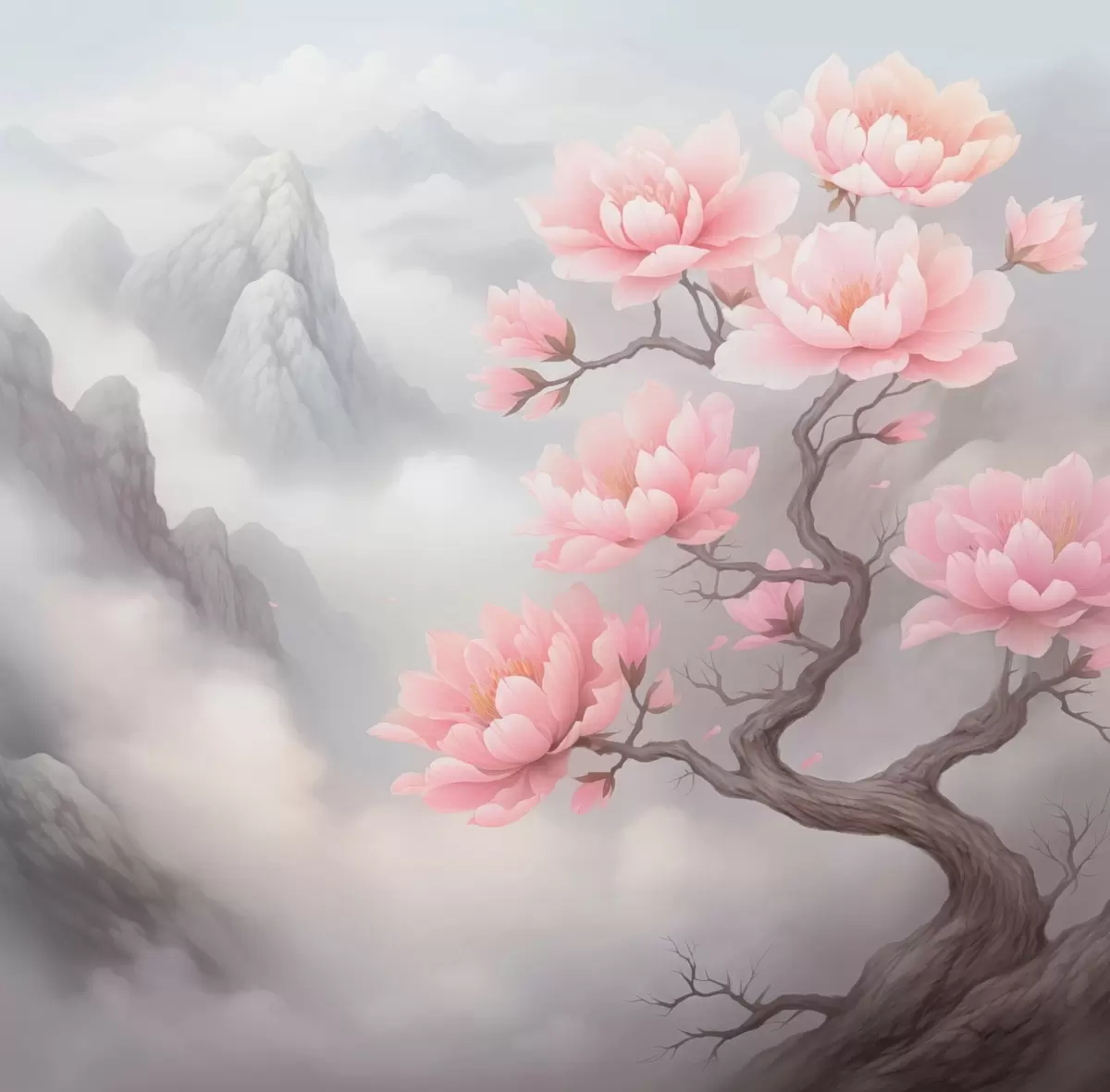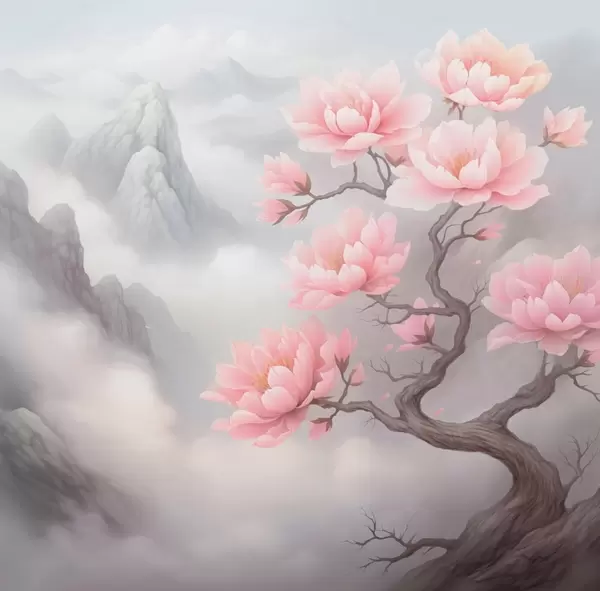 Murais de parede Árvore seca com flores grandes na encosta da montanha Nr. w03388