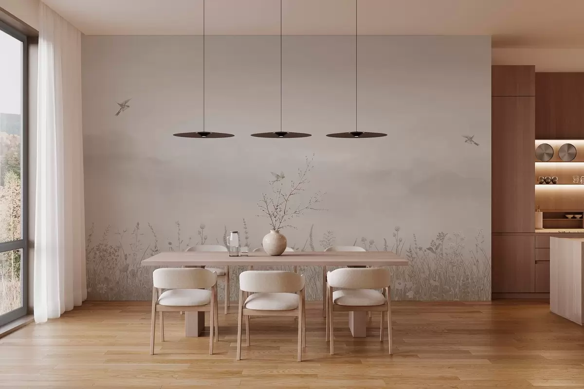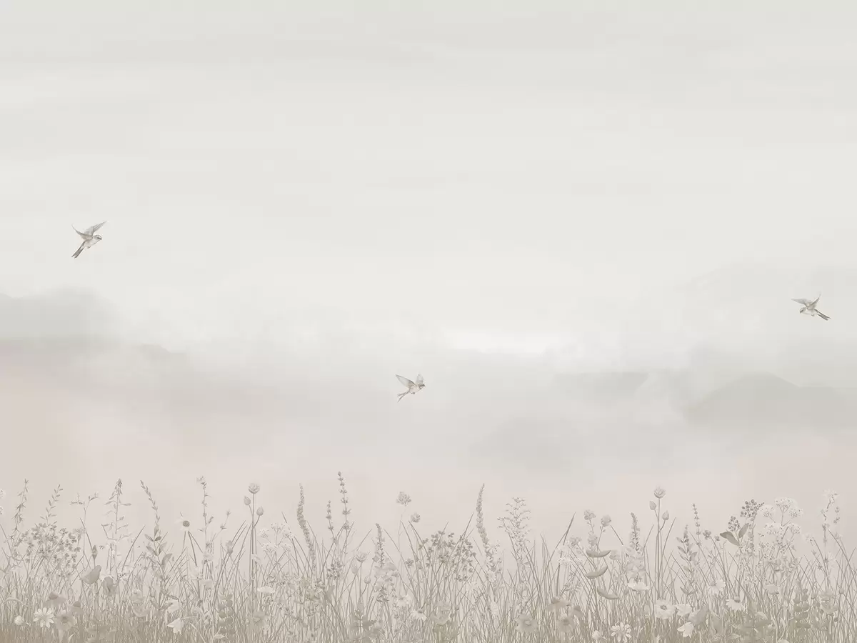 Murais de parede Flores silvestres e céu enevoado em tons de bege Nr. w03391v2