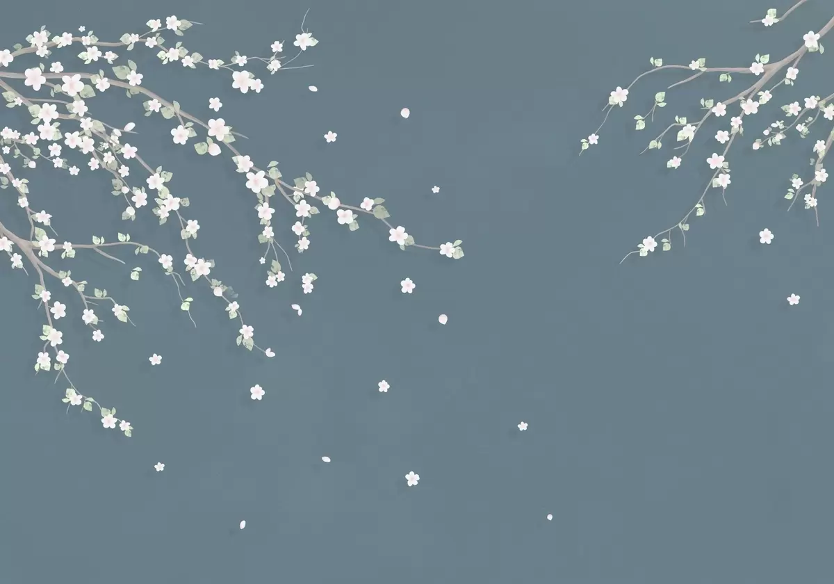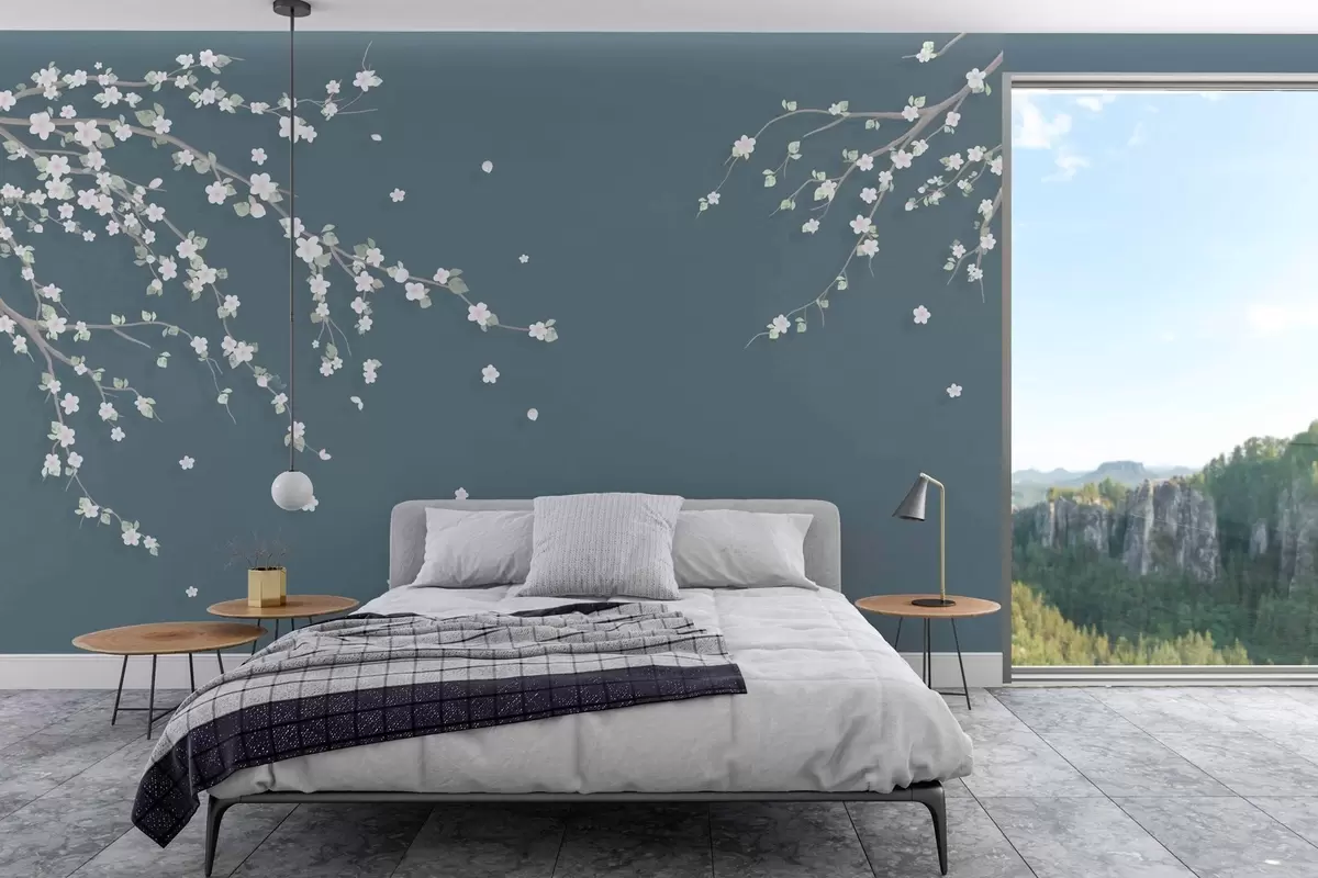 Murais de parede Galho florido no fundo de uma parede em estilo grunge azul Nr. w03393v1