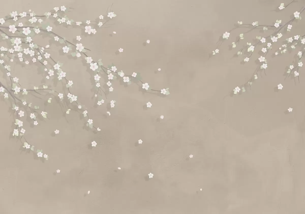 Murais de parede Galho florescendo no fundo de uma parede grunge na cor bege Nr. w03393v2