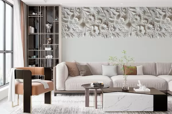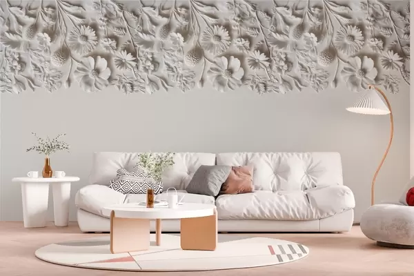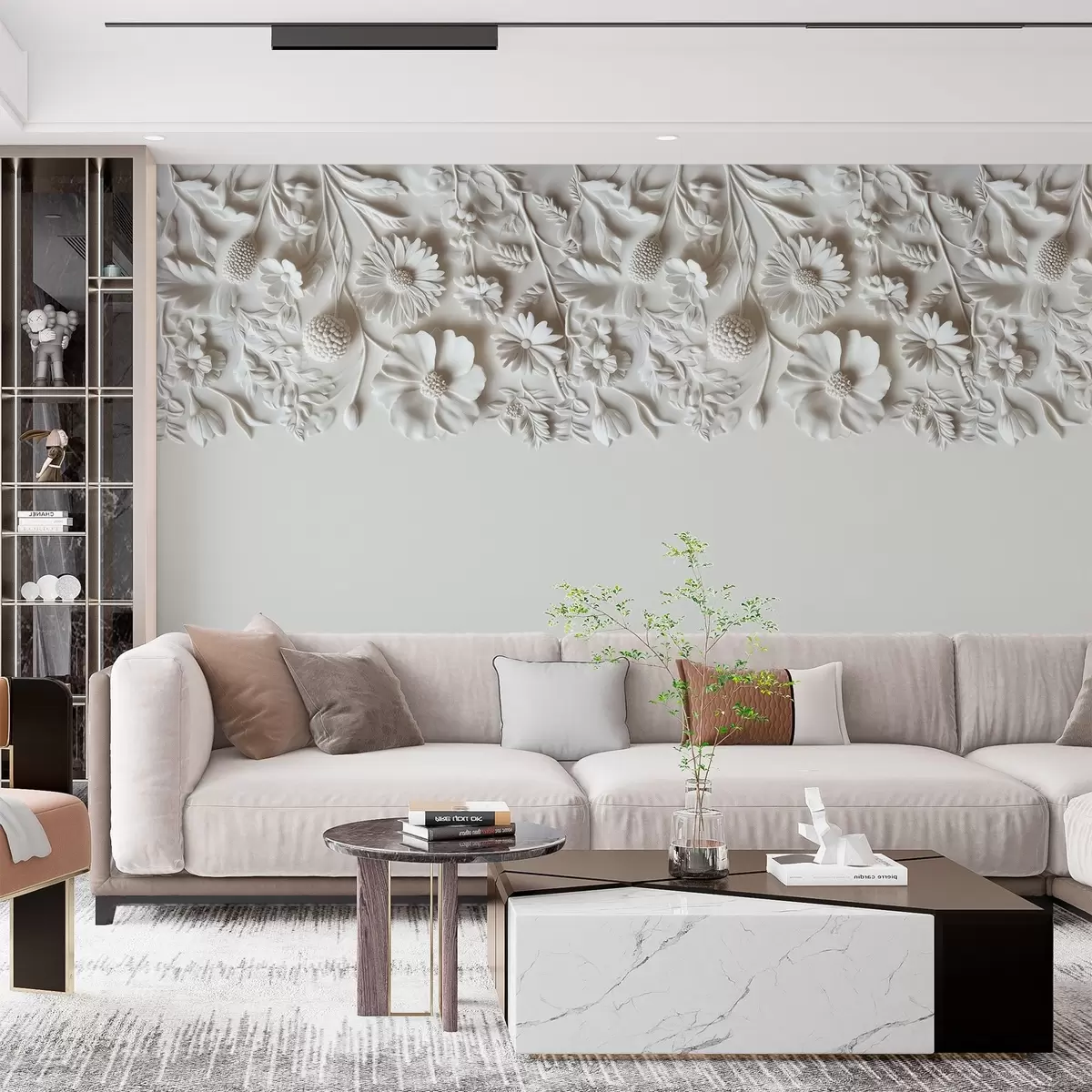 Murais de parede Imitação de flores em baixo relevo na parte superior em cor de leite Nr. w03398v1