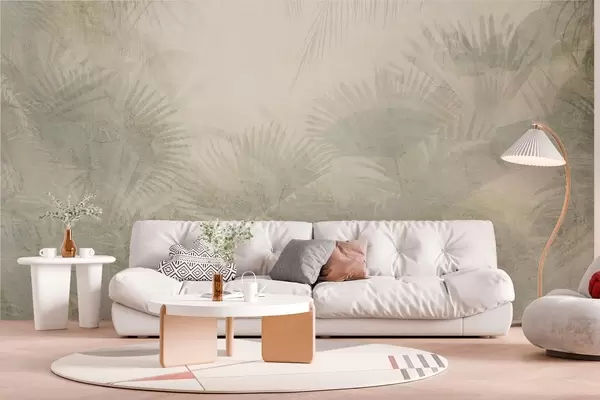 Murais de parede Papel de parede retrô tropical texturizado em tons de bege Nr. w03399