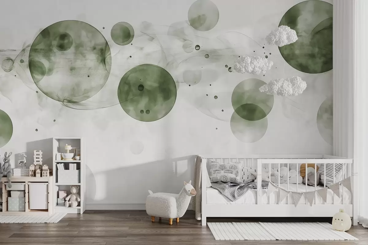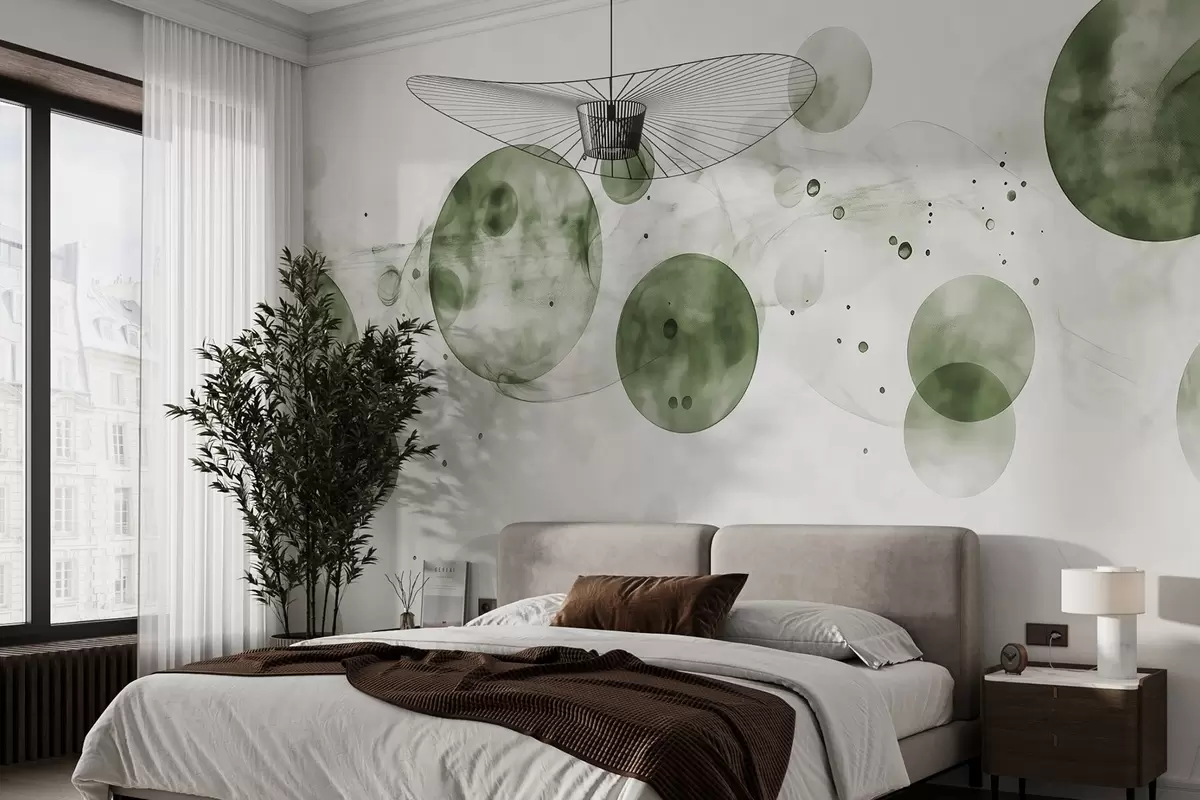 Murais de parede Círculos em estilo aquarela, abstração, etéreo, arte fluida, cores verdes Nr. w03405v1