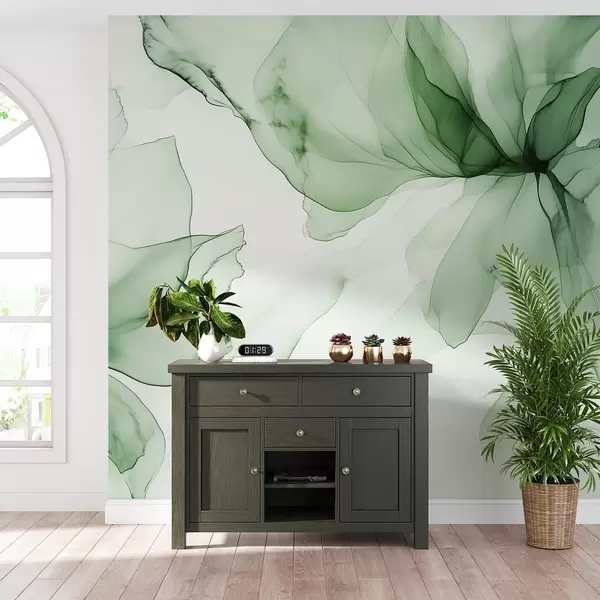 murais de parede Flores de estilo fluido, abstração floral, aquarela, paleta de cores verdes  w03406