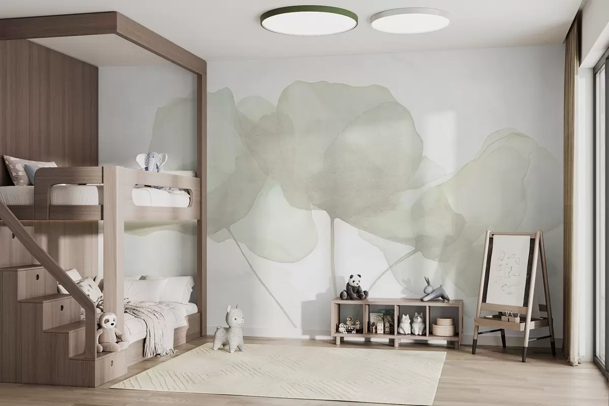 Murais de parede Lindas flores, tons pastéis suaves, minimalismo, natural, rústico, bege e verde Nr. w03407