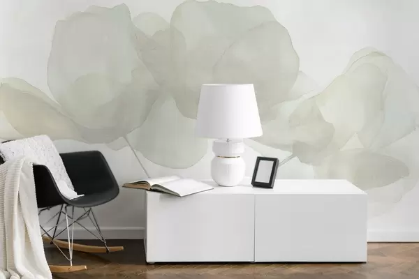 murais de parede Lindas flores, tons pastéis suaves, minimalismo, natural, rústico, bege e verde w03407