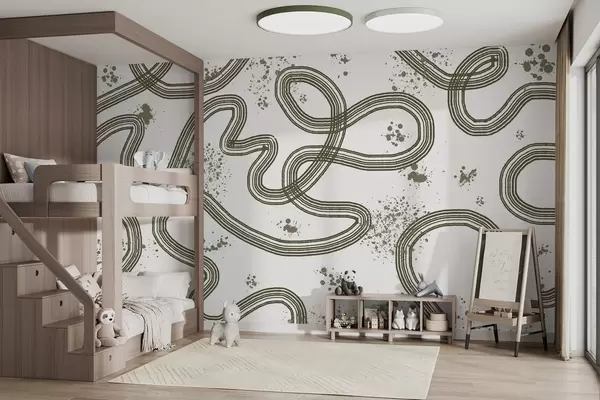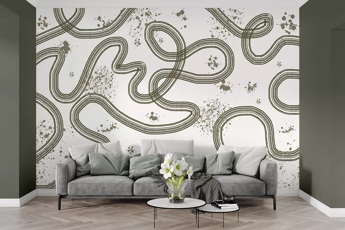 Murais de parede Desenho de arte em linha, respingos de tinta, minimalismo, cor de oliva Nr. w03408