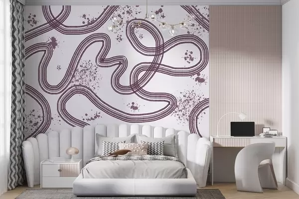 Murais de parede Desenho de arte em linha, respingos de tinta, minimalismo, cor violeta Nr. w03408v1