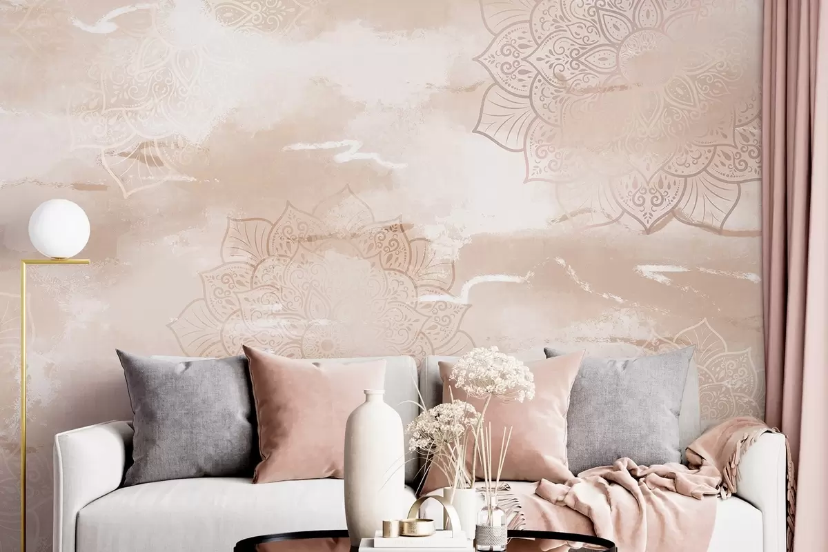 Murais de parede Mandalas em fundo pastel, pinceladas vívidas, cores bege Nr. w03409