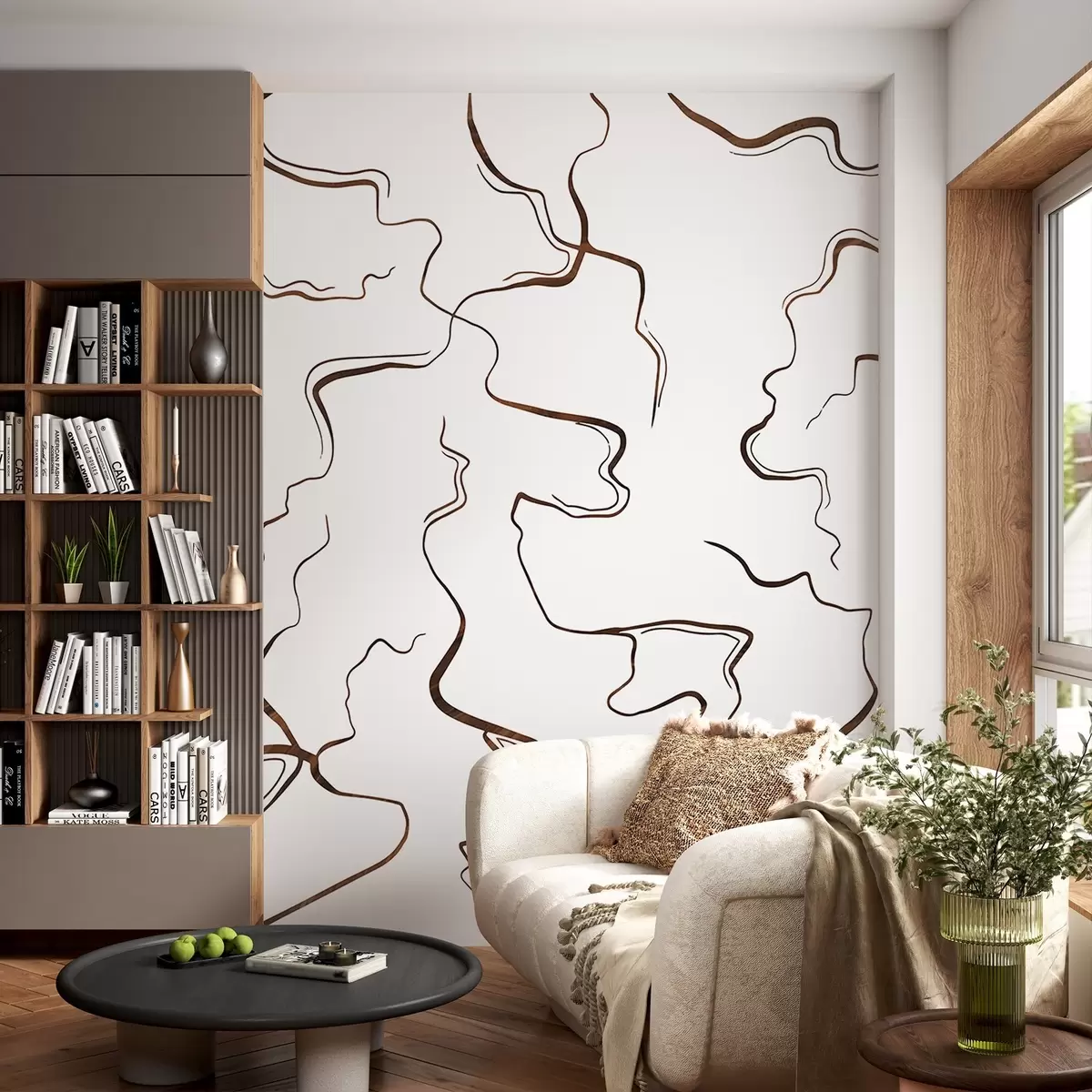 Murais de parede Linhas geométricas, estilo de tinta, abstração, cores marrons Nr. w03436v1