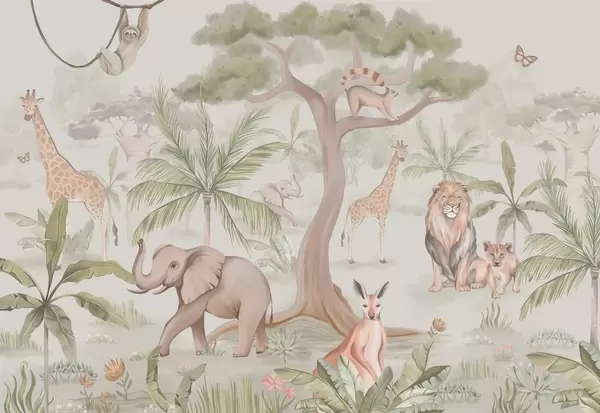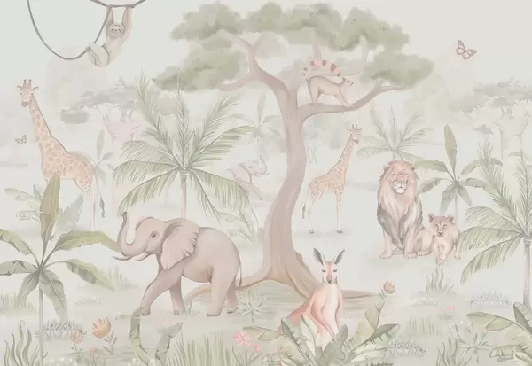 Murais de parede Panorama da selva com animais em cores claras Nr. w03444v1
