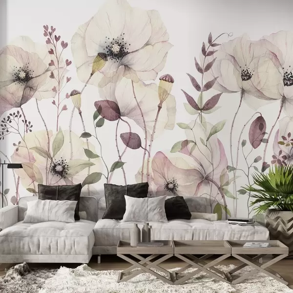 Murais de parede Flores silvestres em aquarela em tons naturais suaves Nr. w03543