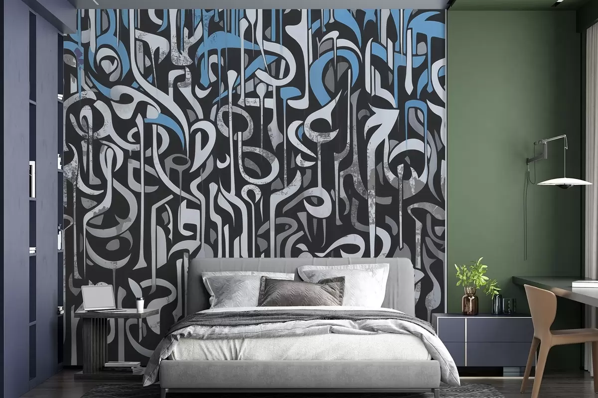 murais de parede Desenho de arte de rua em azul e cinza w03607v1