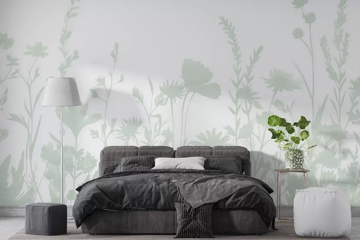 Murais de parede Prado de verão, rústico, flores, paleta de cores verdes Nr. w03670v3