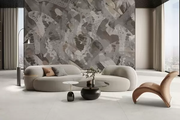 Murais de parede abstração de um bando de borboletas em tons de cinza e marrom Nr. w03725