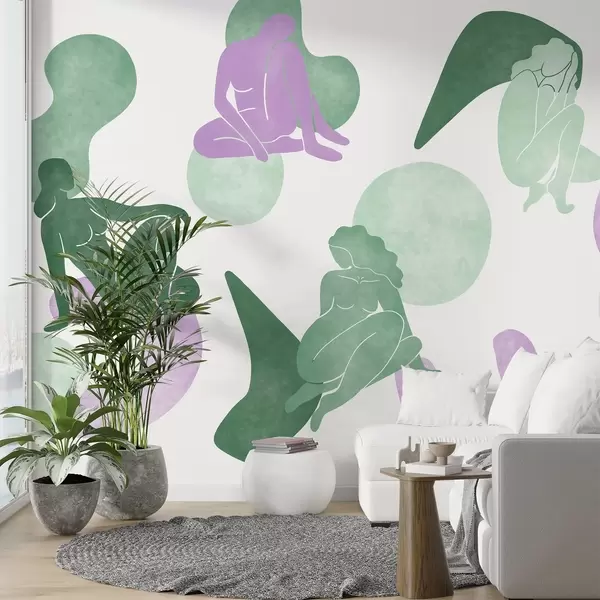Murais de parede Abstrações geométricas com silhuetas femininas, estilo boho, roxo, verde Nr. w03753v4