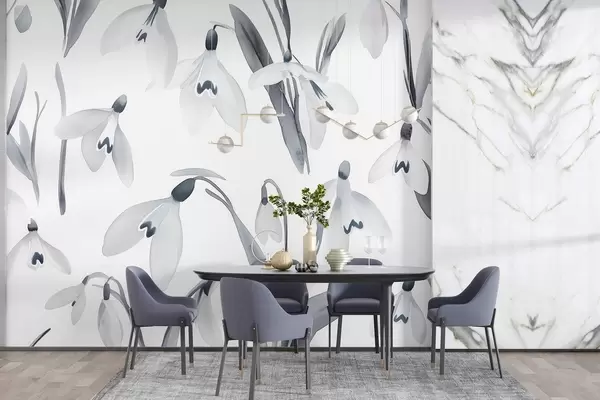 Murais de parede Flores Snowdrops em estilo aquarela, cores cinza Nr. w03754v1
