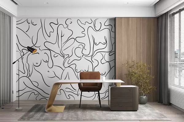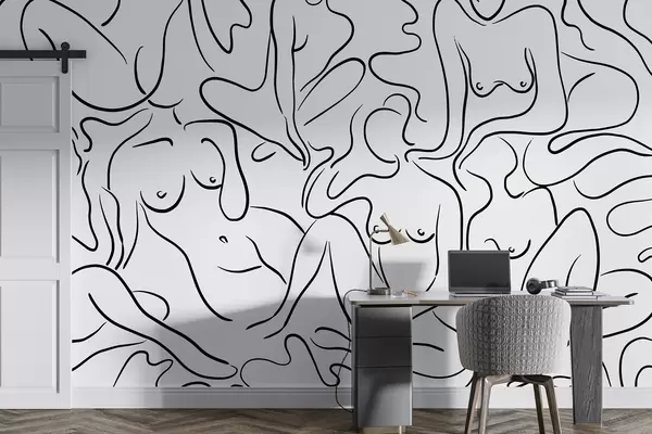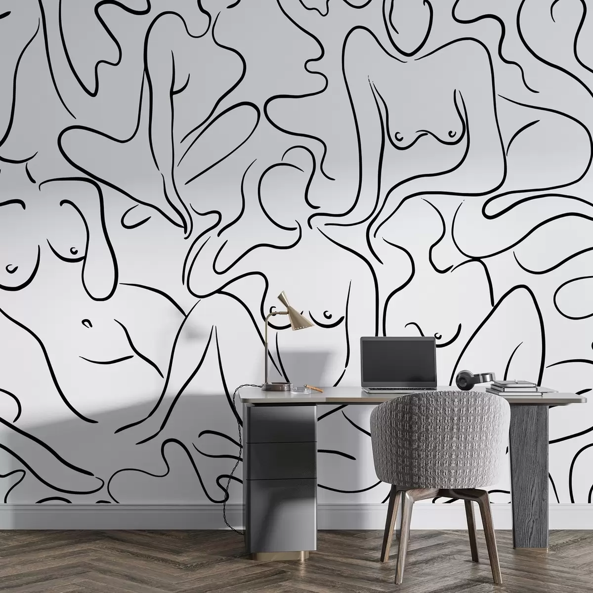Murais de parede Desenho de linha, silhuetas de corpos de mulheres, abstração, cor preta Nr. w03755