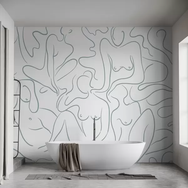 Murais de parede Desenho de linha de silhuetas anatômicas, abstração, cor azul Nr. w03755v1