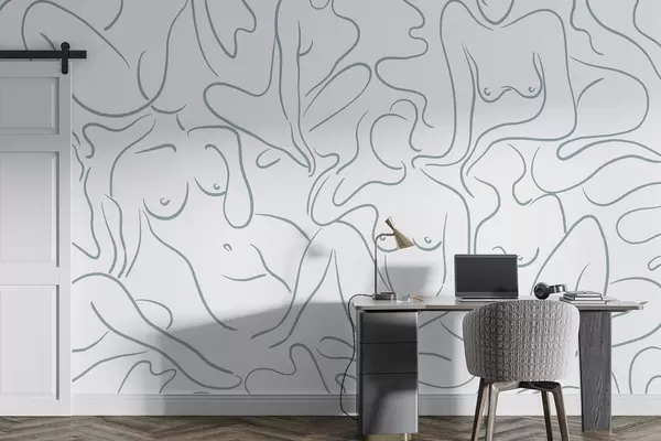 Murais de parede Desenho de linha de silhuetas anatômicas, abstração, cor azul Nr. w03755v1