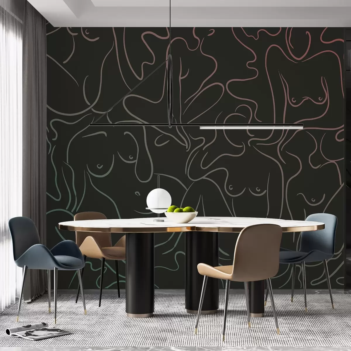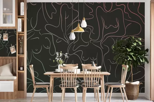 Murais de parede Desenho de linha de silhuetas anatômicas, abstração, fundo escuro Nr. w03755v2
