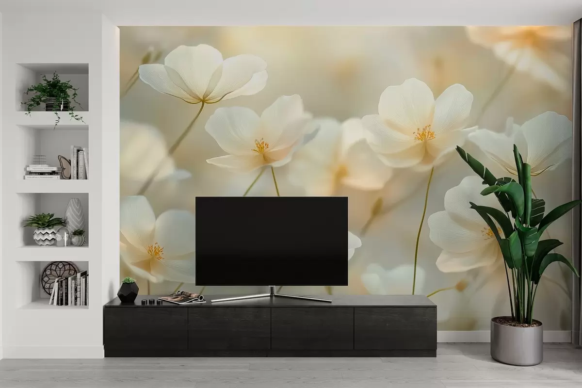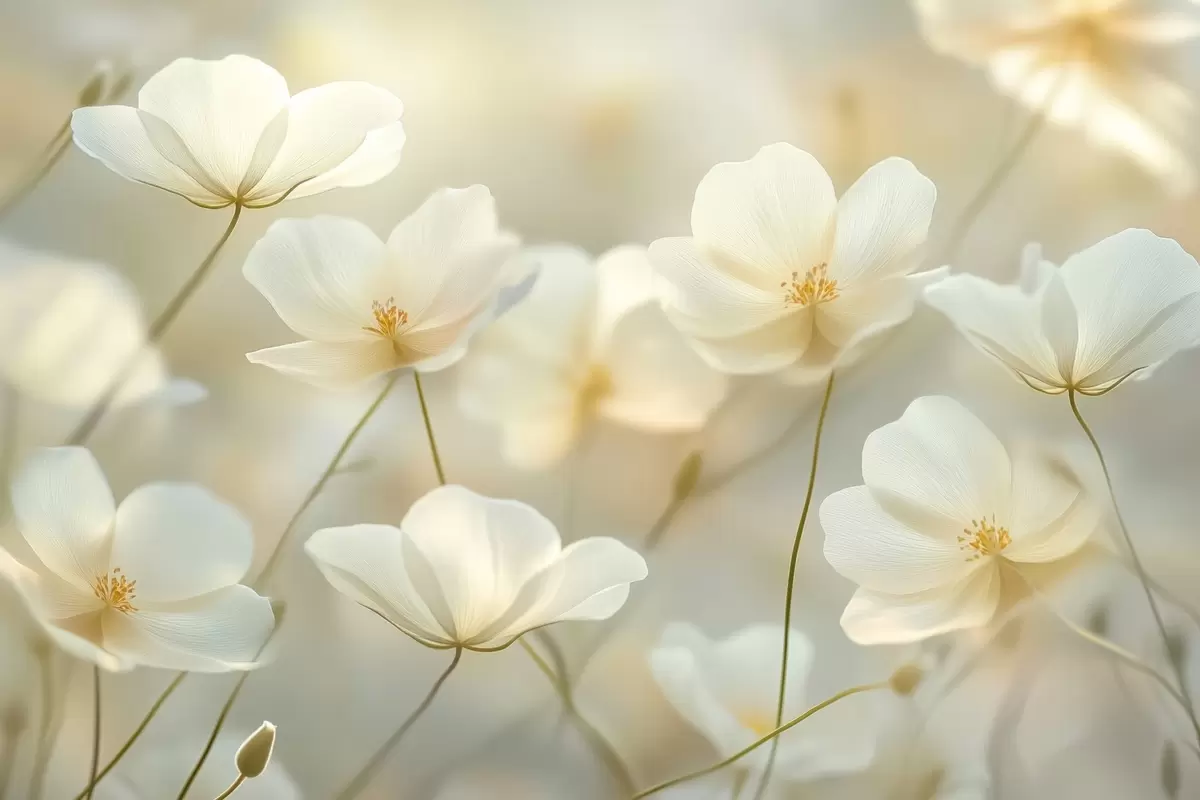 Murais de parede flores brancas matinais Nr. w03766