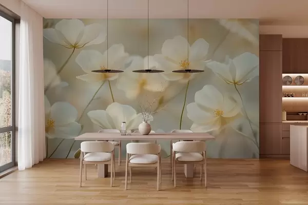 Murais de parede flores brancas matinais Nr. w03766