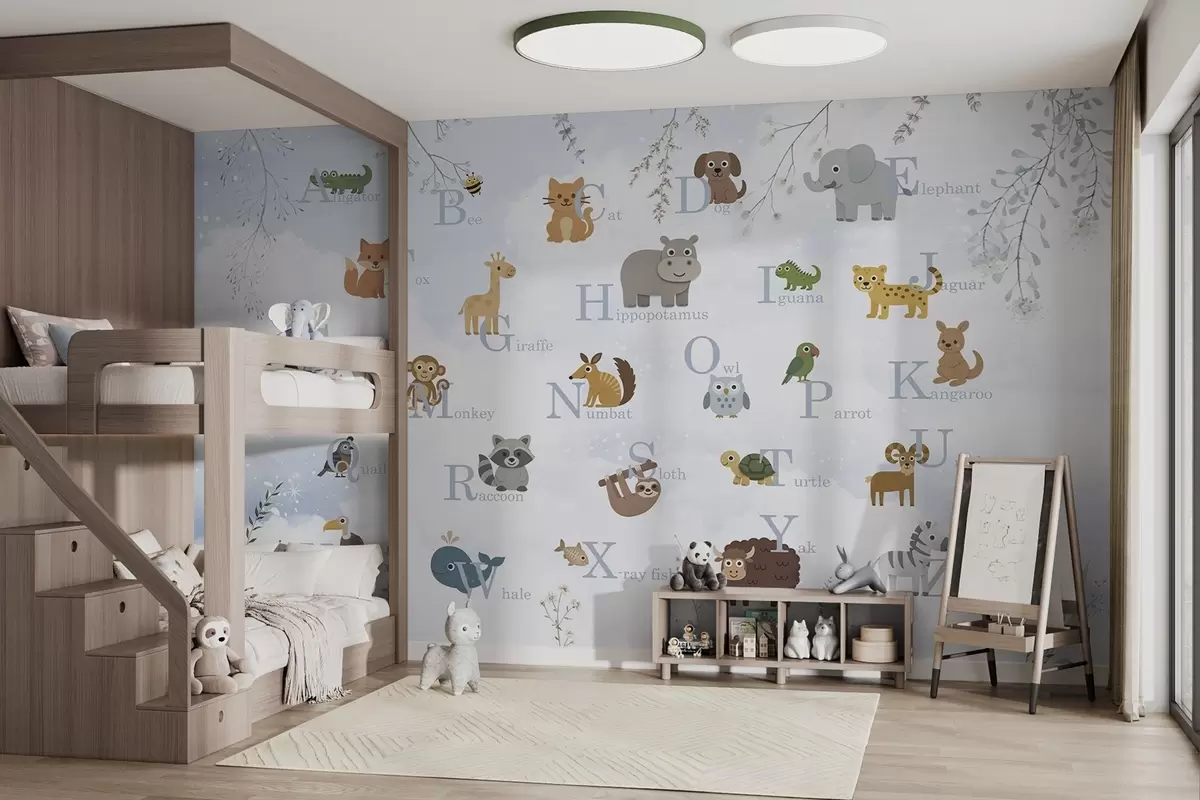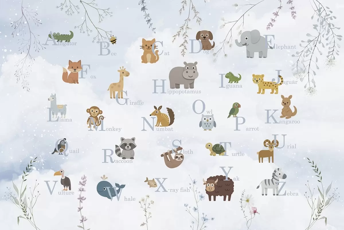 Murais de parede Alfabeto com letras azuis, plantas e céu Nr. w03809v1
