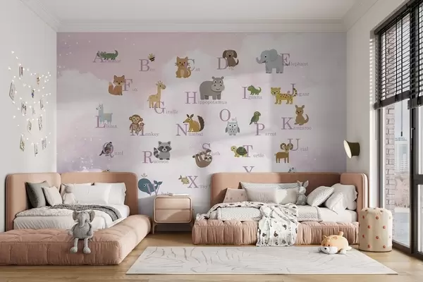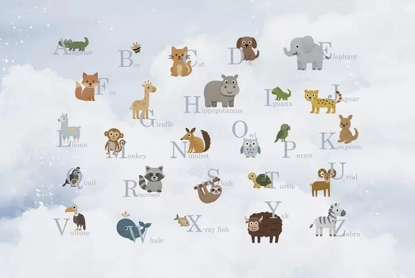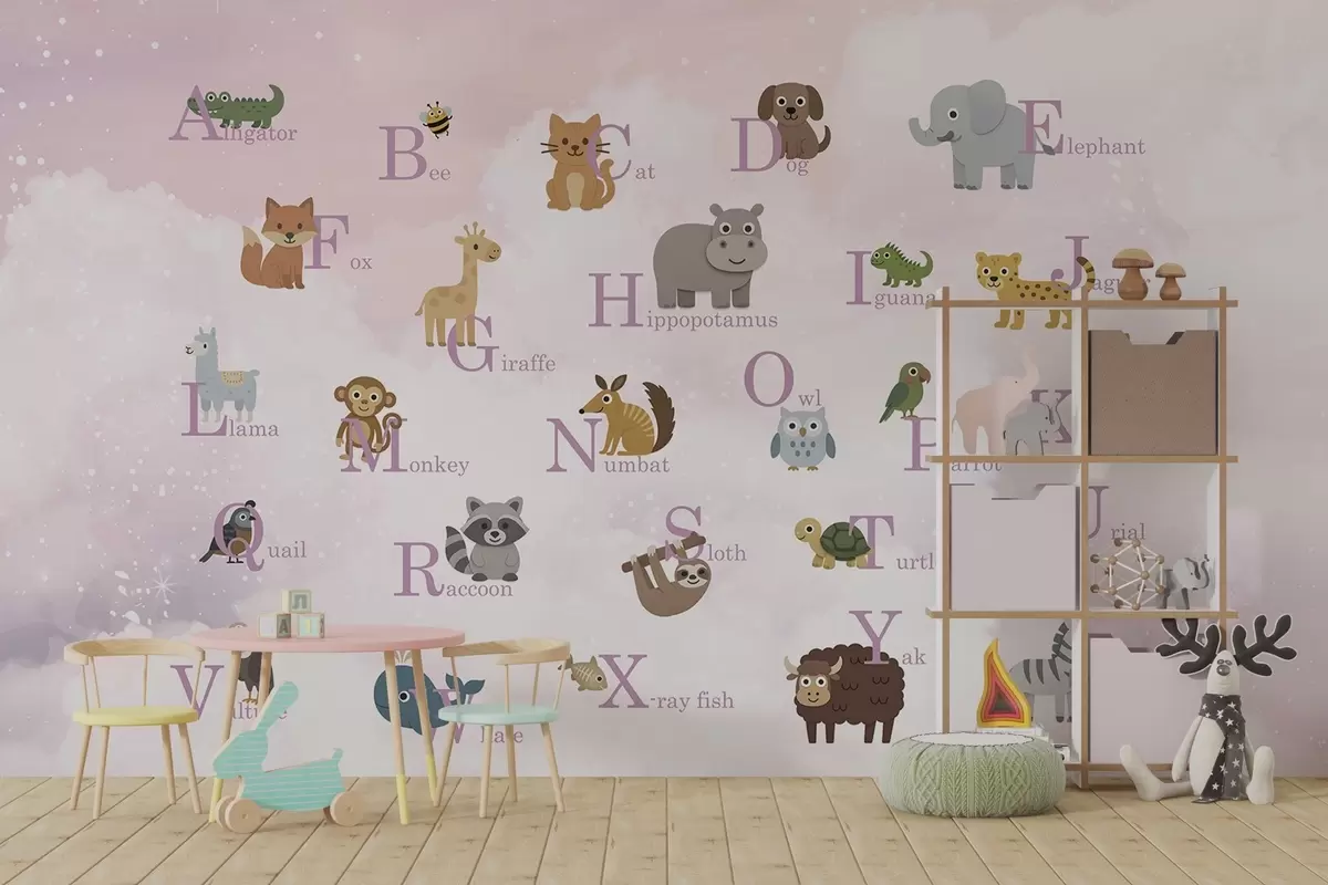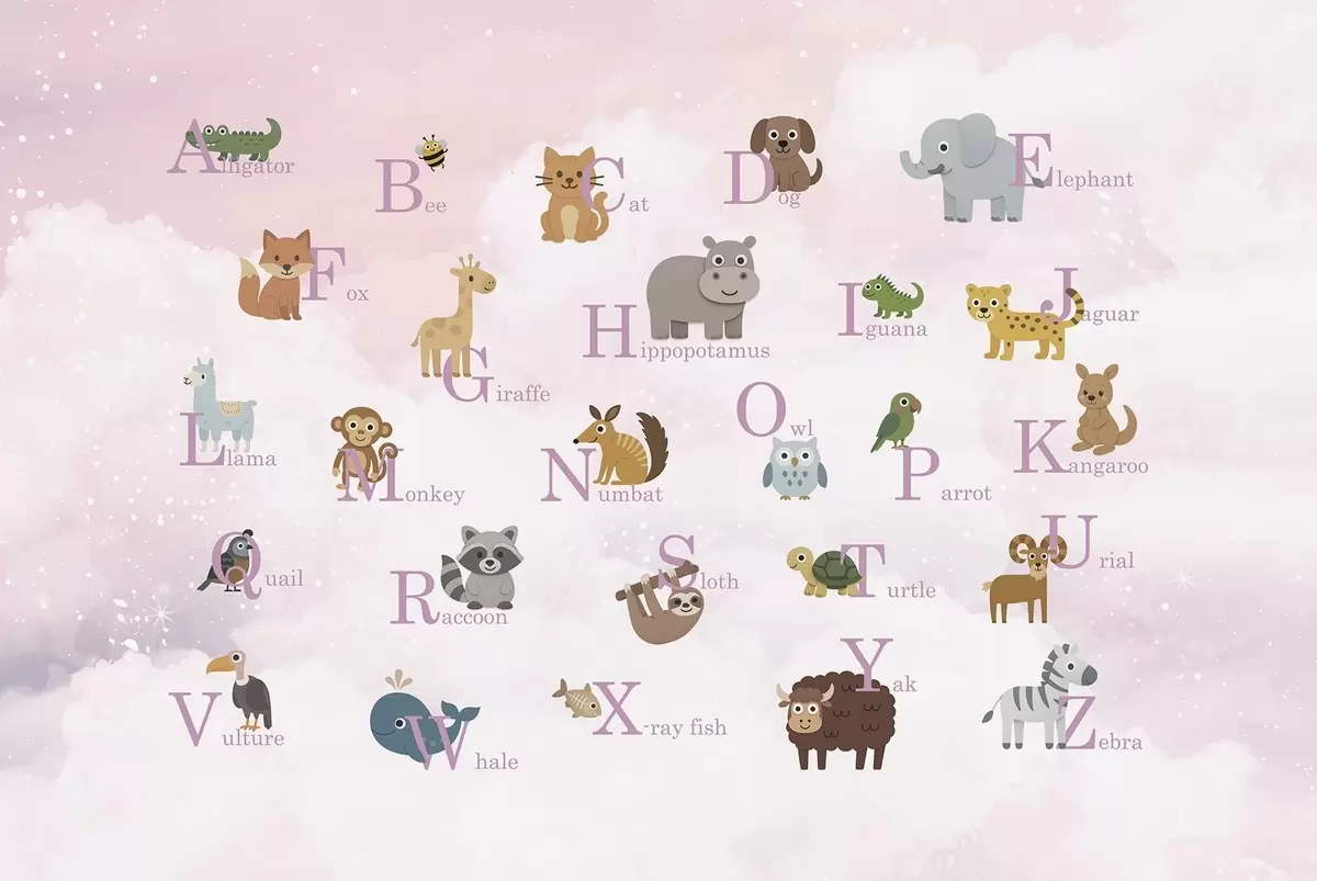 Murais de parede Alfabeto com letras rosa em um fundo de céu Nr. w03810