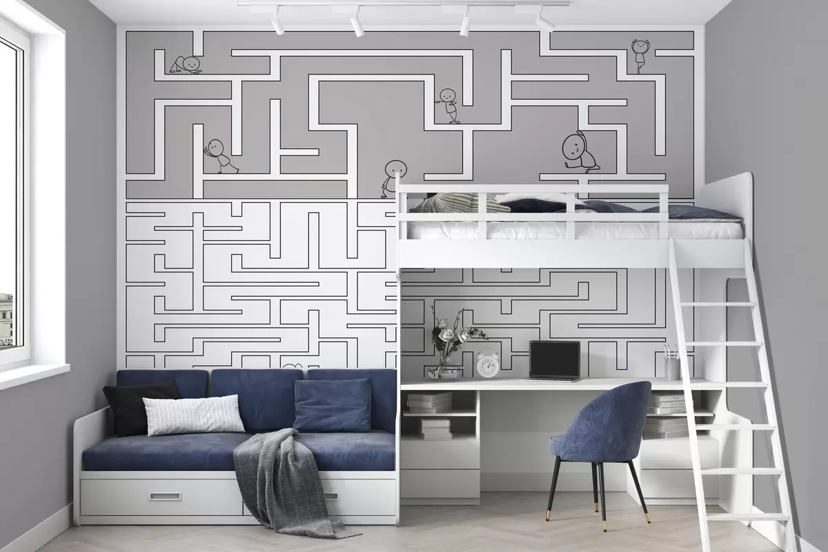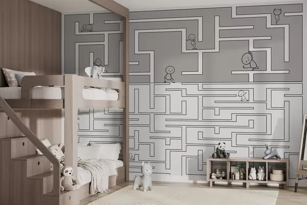 Murais de parede Labirinto em cinza e branco Nr. w03873v1
