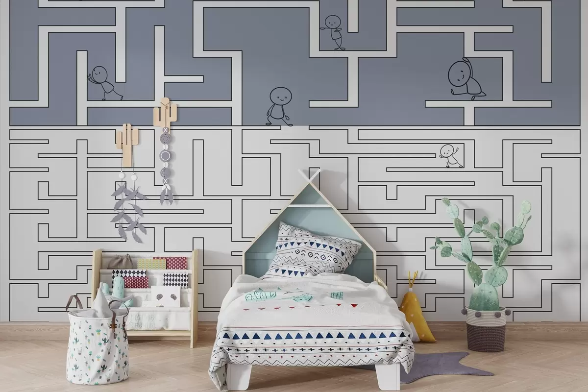 Murais de parede Labirinto em azul e branco Nr. w03873v2