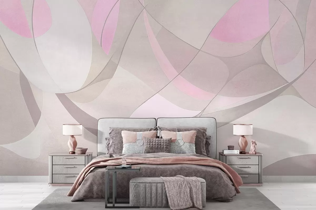 Murais de parede Abstração geométrica, cores rosa e bege suaves Nr. w03878v1