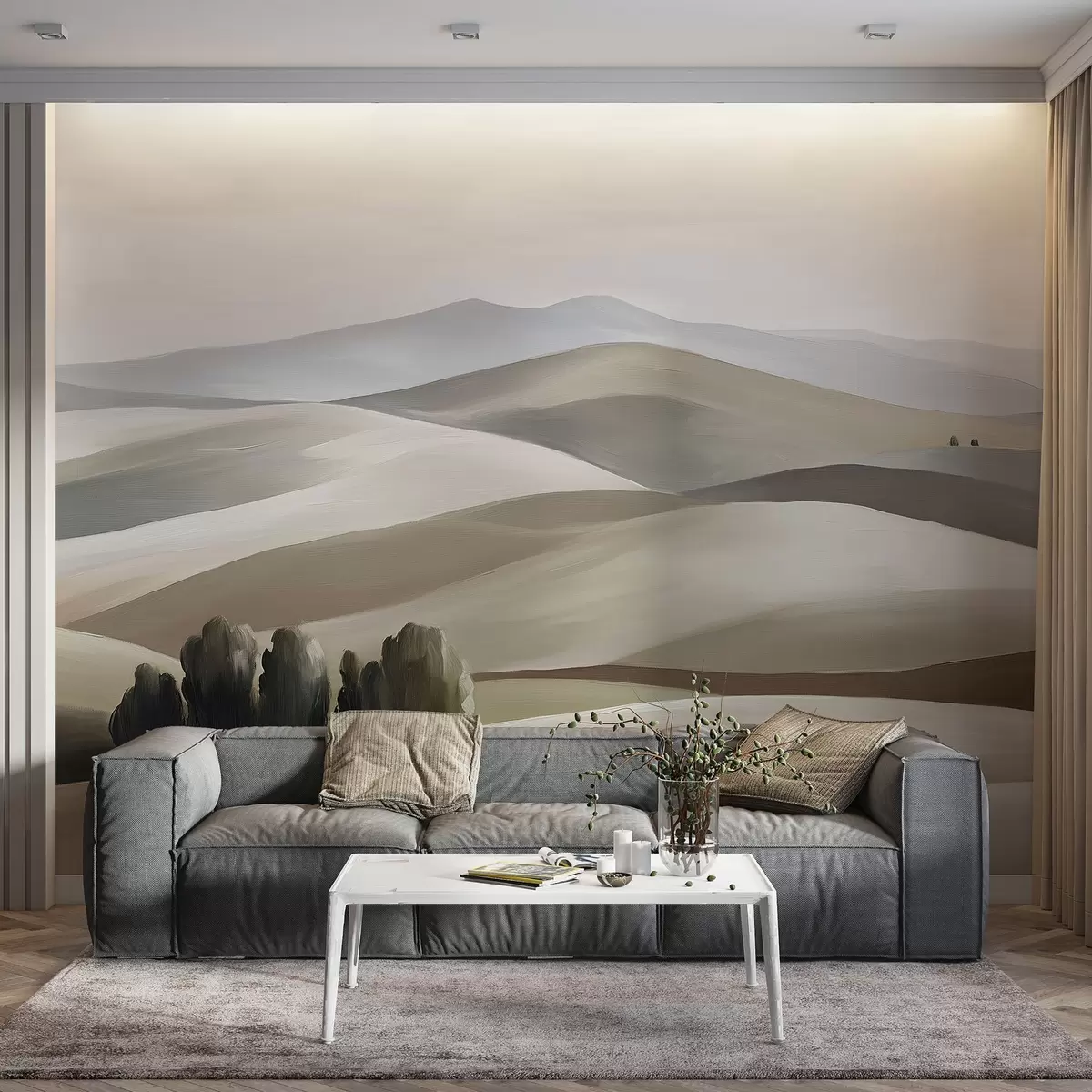 Murais de parede Paisagens com árvores, Toscana, cores bege e cinza, estilo a óleo Nr. w03880v1