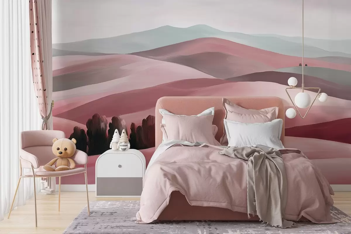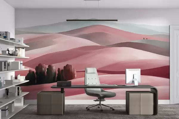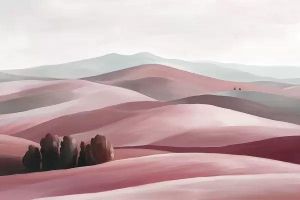Murais de parede Paisagens com árvores, Toscana, cores rosa, estilo a óleo Nr. w03880v2