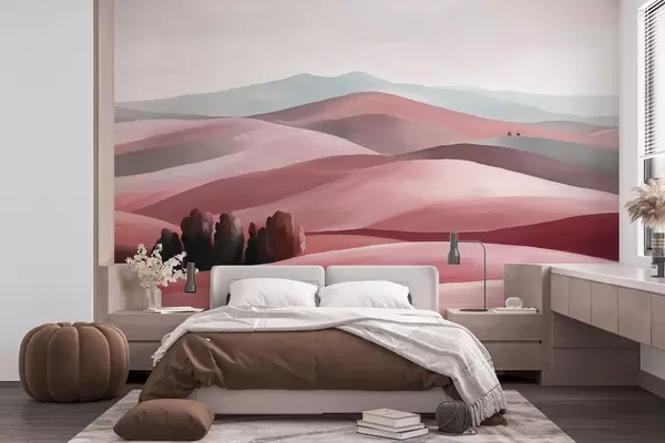 murais de parede Paisagens com árvores, Toscana, cores rosa, estilo a óleo w03880v2