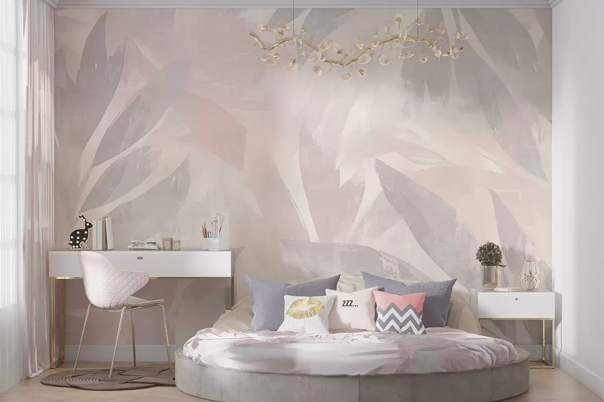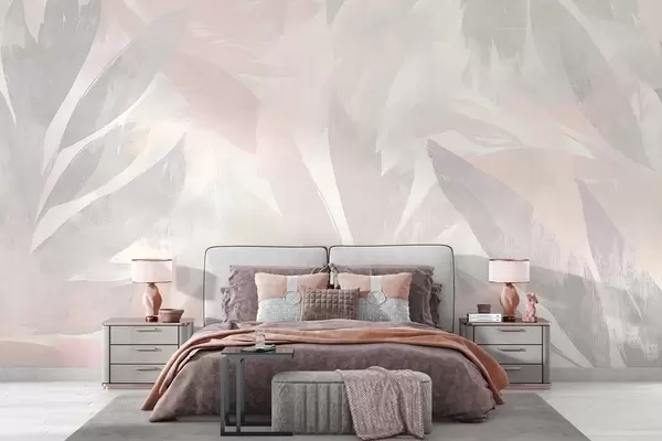 Murais de parede Folhas tropicais, florais, palmeiras, estilo pastel, cores rosa e bege Nr. w03881