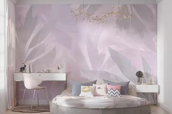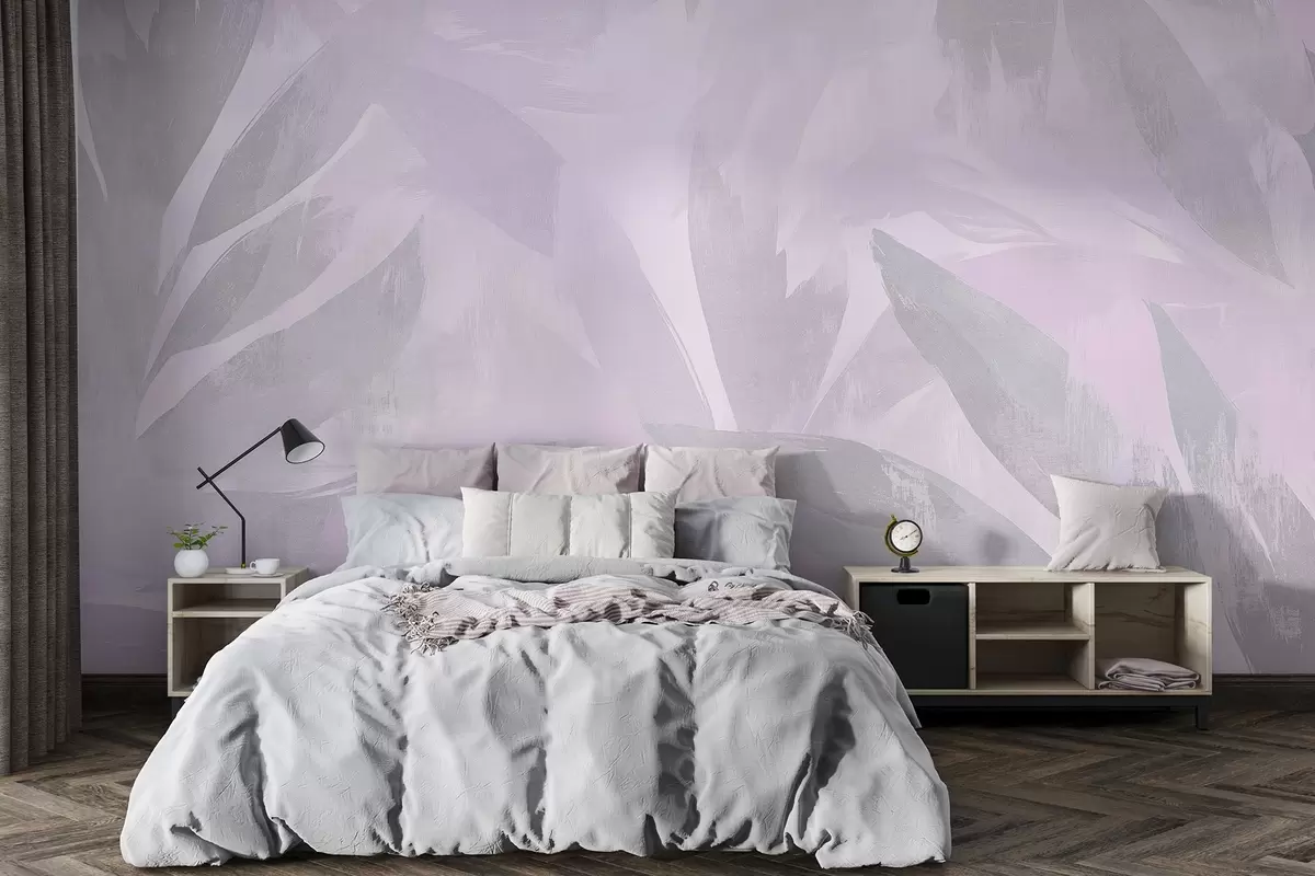 Murais de parede Folhas tropicais, florais, palmeiras, estilo pastel, cores roxas Nr. w03881v1