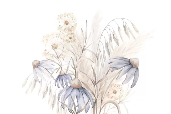 Murais de parede Dente-de-leão e flores entre ervas secas Nr. w03908